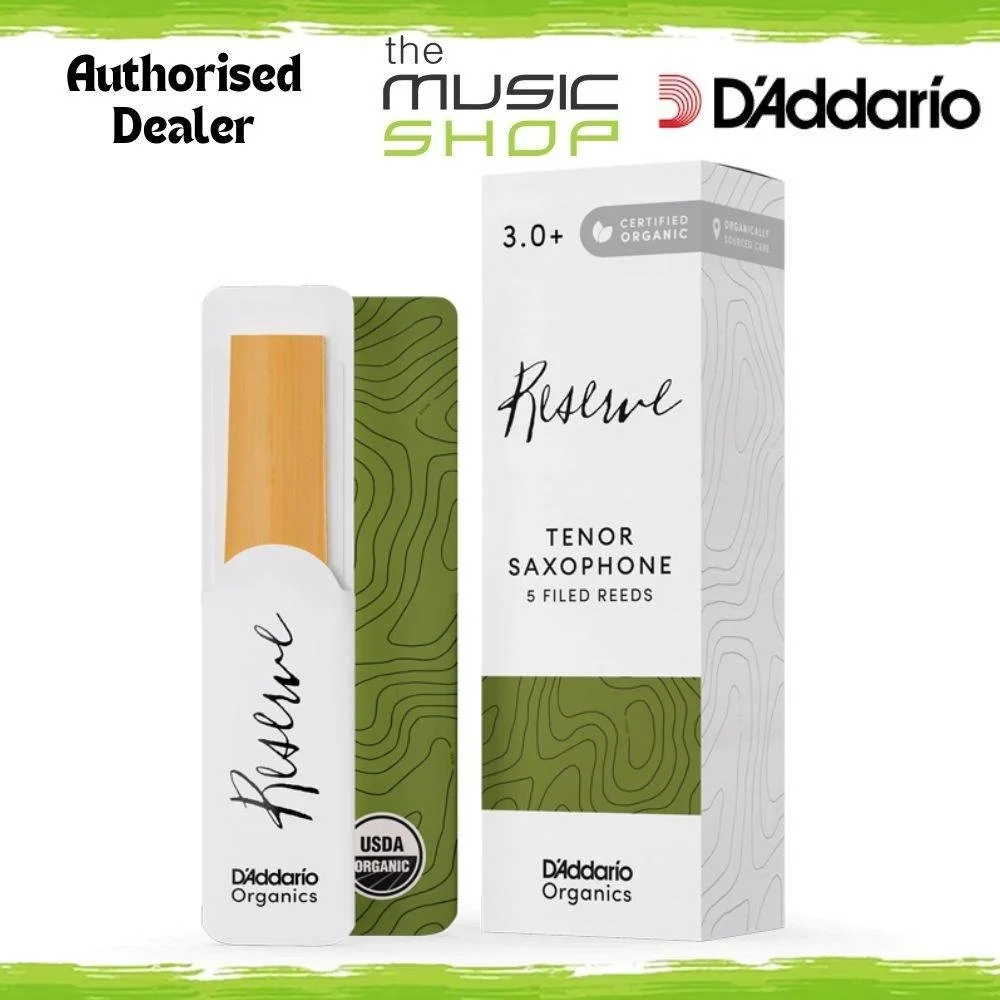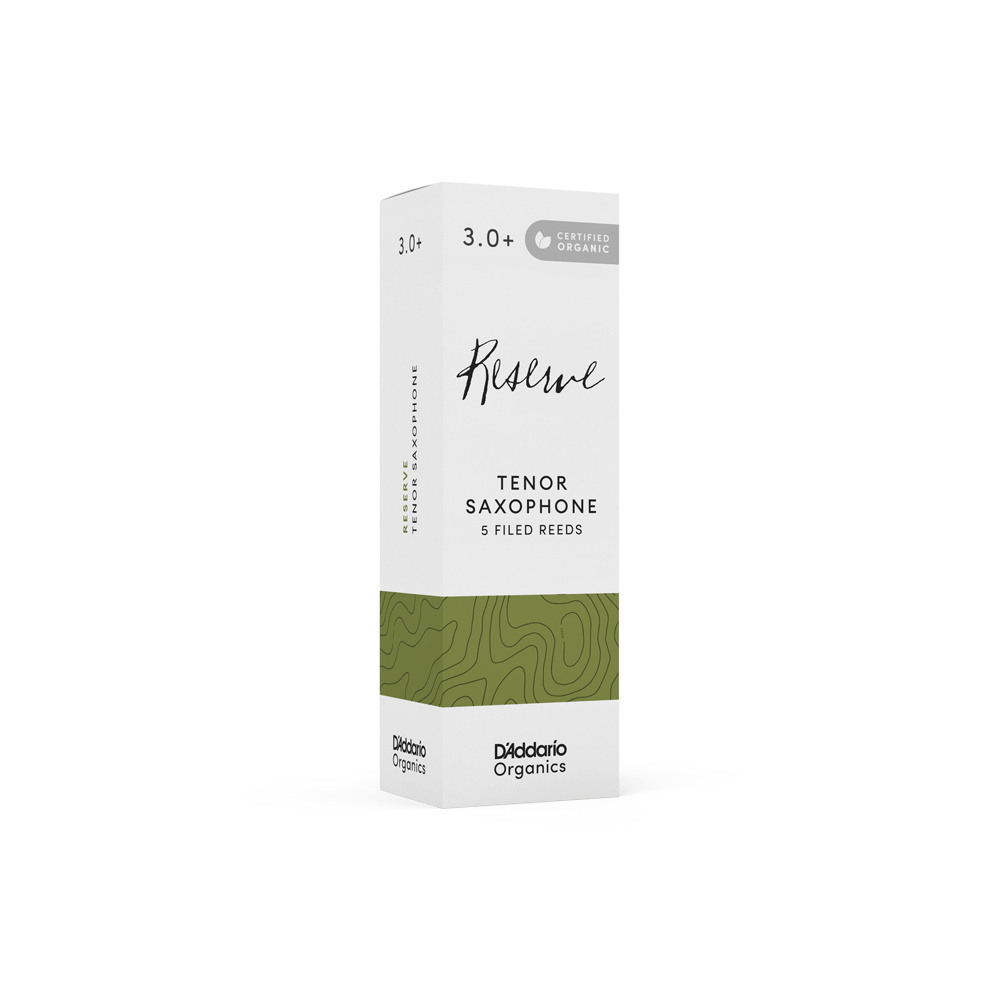 D'Addario Organic Reserve Tenor Saxophone Reeds, 3.0+ Strength, 5 Pack ODKR05305