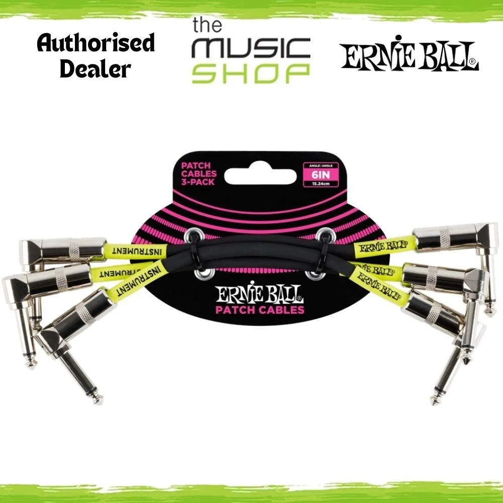 Ernie Ball 6" Classic Patch Cable with Angle/Angle Ends, Black, 3 Pack - 6050