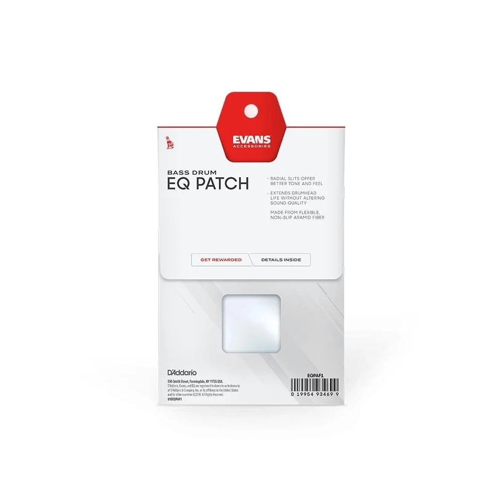 EVANS AF Patch is an Aramid Fiber bass drum patch that provides unsurpassed durability and emphasizes attack characteristics. This patch contains four radial slits along the perimeter, allowing the head to vibrate naturally for better tone and feel.