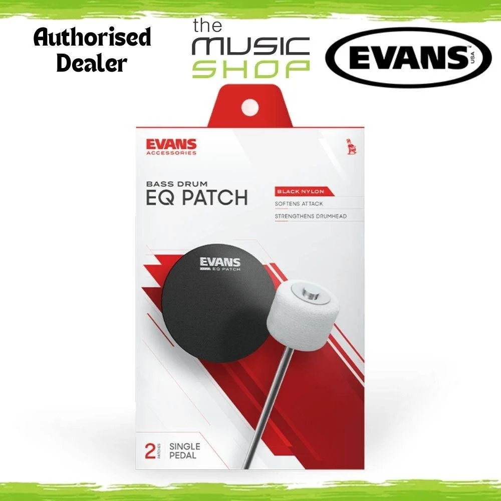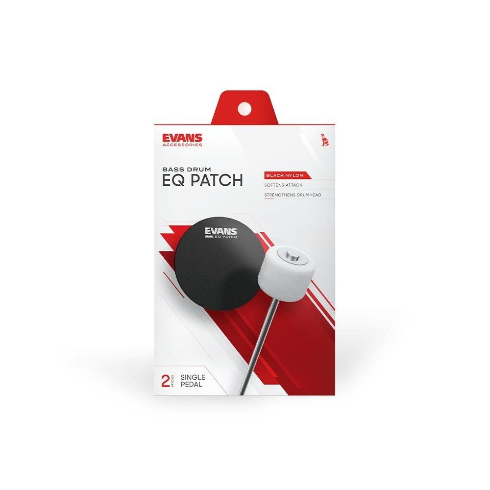 EVANS EQPB1 is a black non-slip flexible nylon bass drum patch which softens attack and strengthens the head without affecting sound quality.