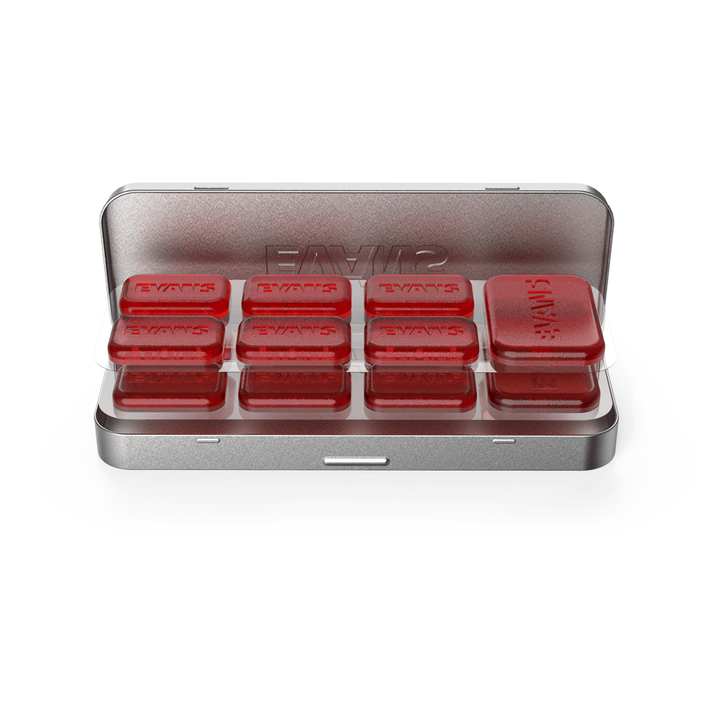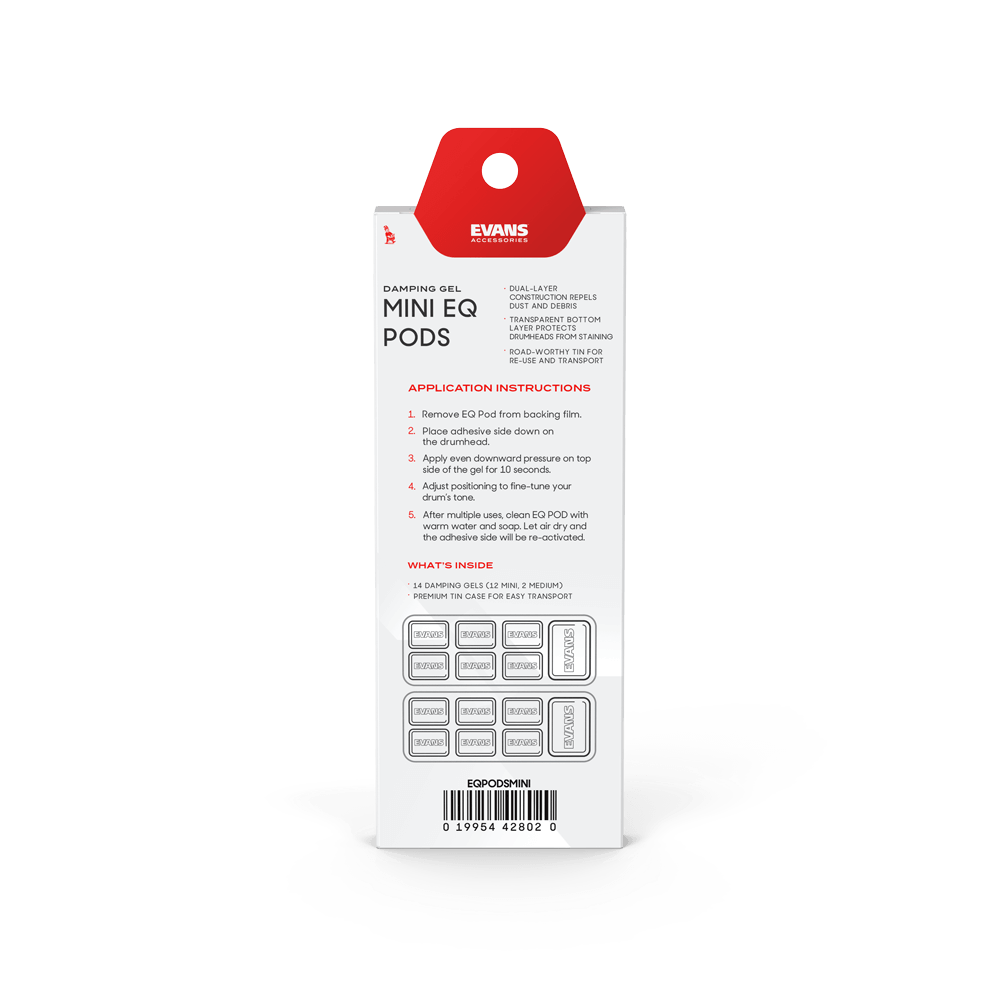 Sculpt your sound with EVANS EQ Pods, the ultimate solution to overtone, tuning, and resonance control. These polymer gels feature a Teflon-coated top side, helping them to remain stain-free and hold their shape. Designed for experimentation, you can apply and remove without surrendering grip, shape, or effectiveness.