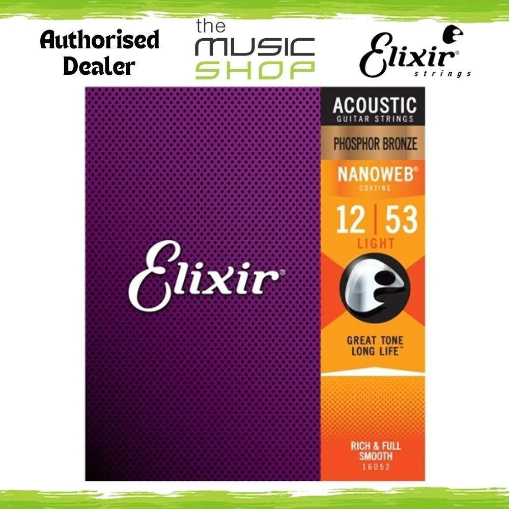 2 x Elixir Nanoweb Acoustic Guitar Strings, Phosphor Bronze, Light, 12-53- 16052
